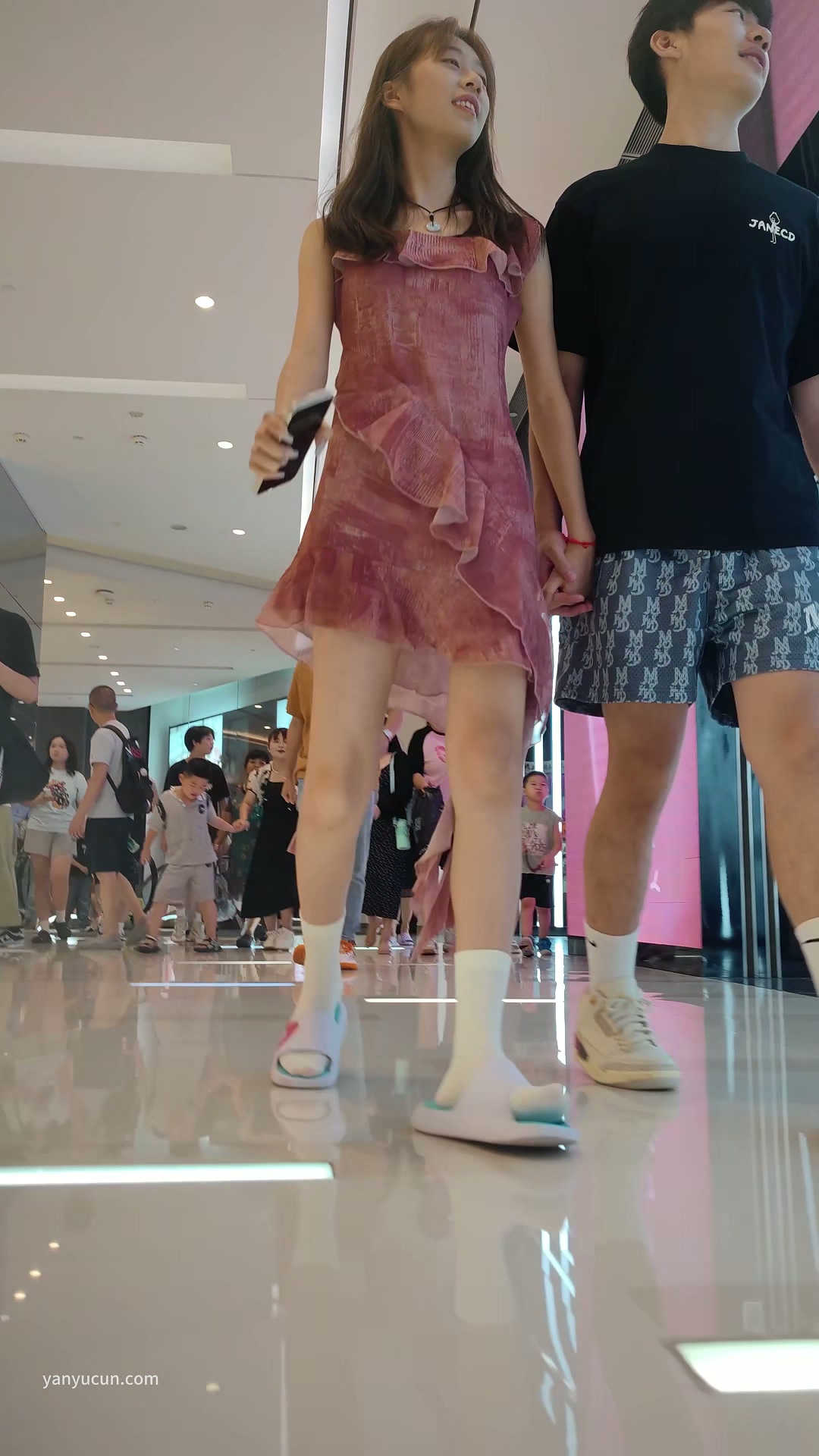 XM301粉色连衣裙小姐姐和男朋友逛街,白色内内 ...