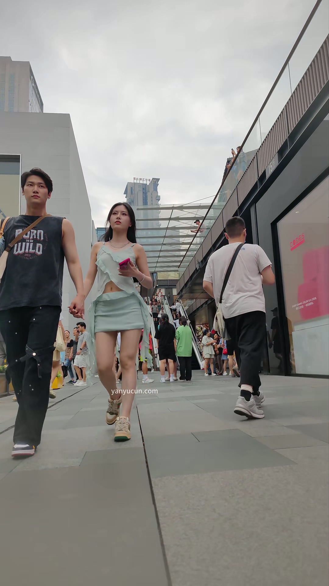 XM330绿色蕾丝超短裙美女和男朋友逛街,粉色内内 ...