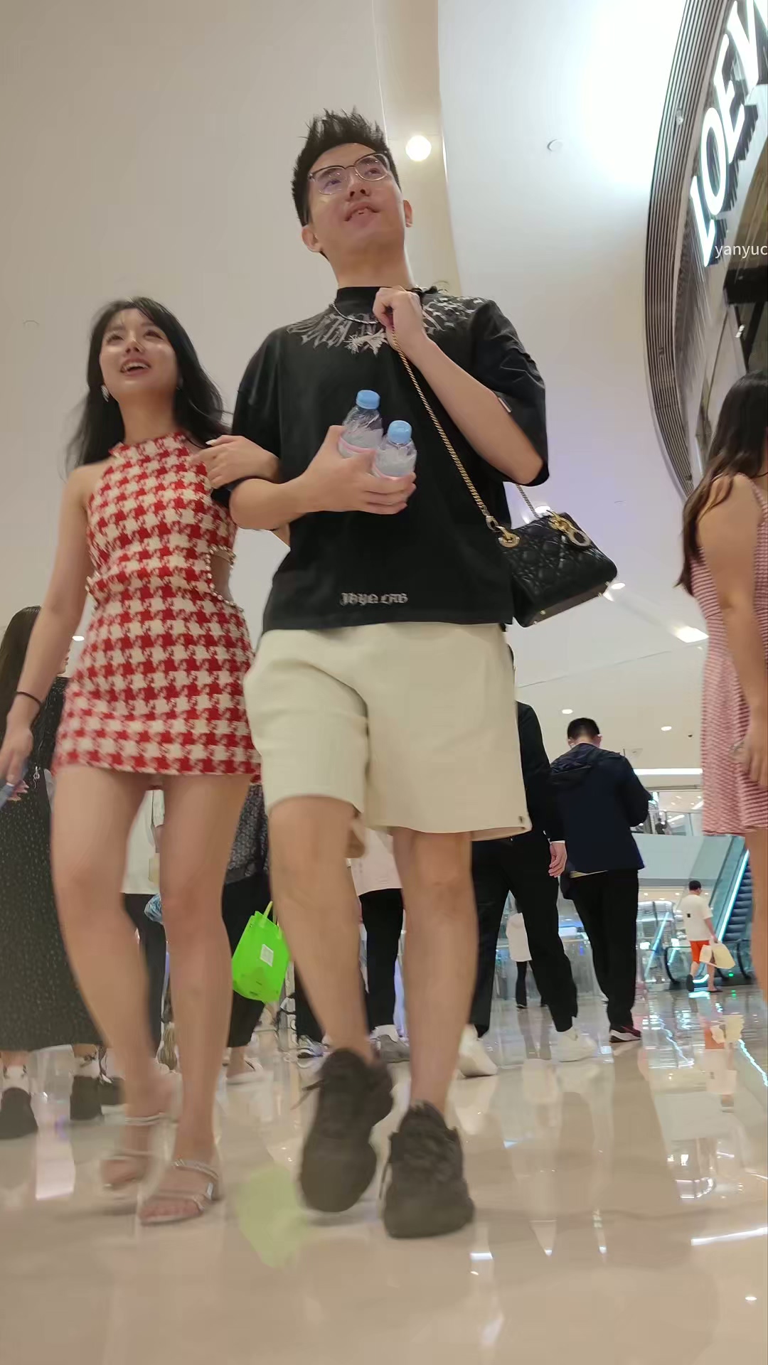 XM341红白连衣裙小姐姐和男朋友逛街,白色内内