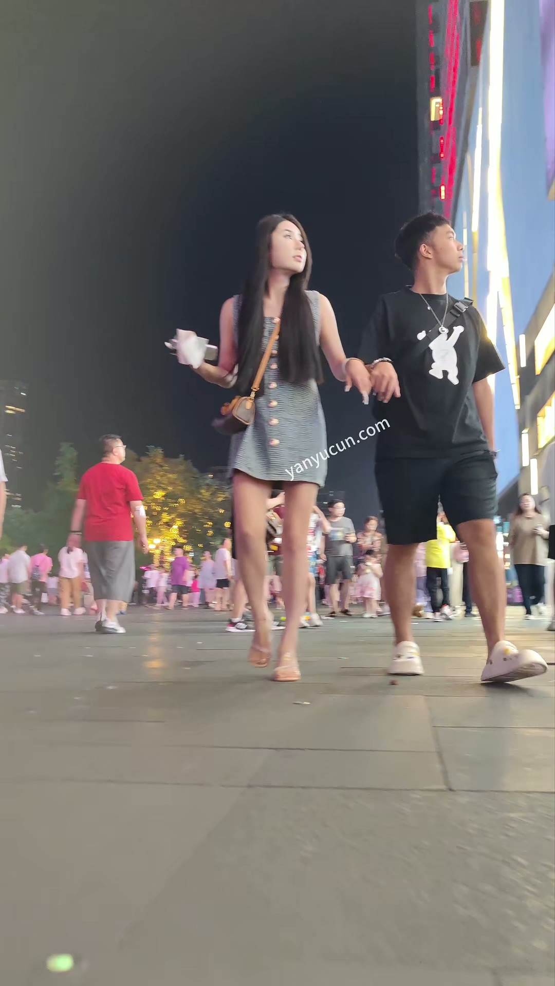 XM355蓝色连衣裙极品美女和男朋友逛街买东西,白色内内 ...