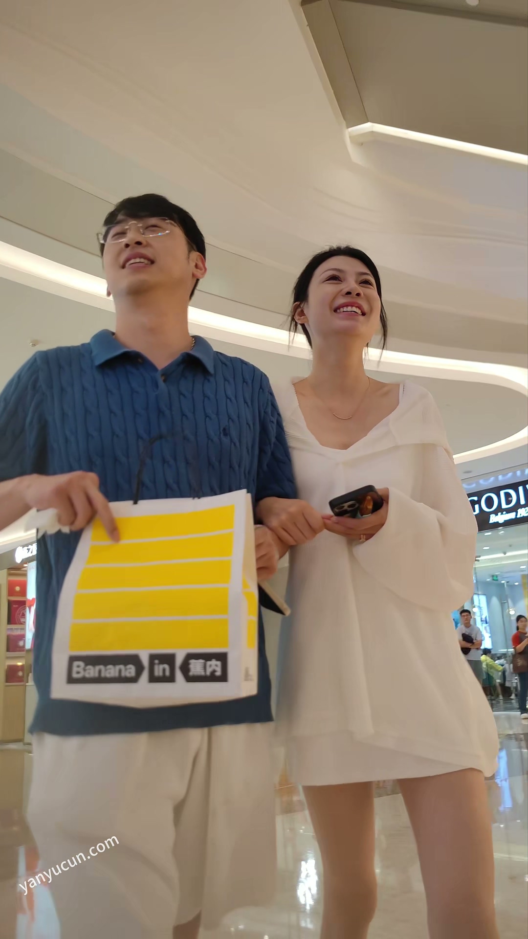 XM375白色连衣裙少妇和老公逛街,黑色窄内