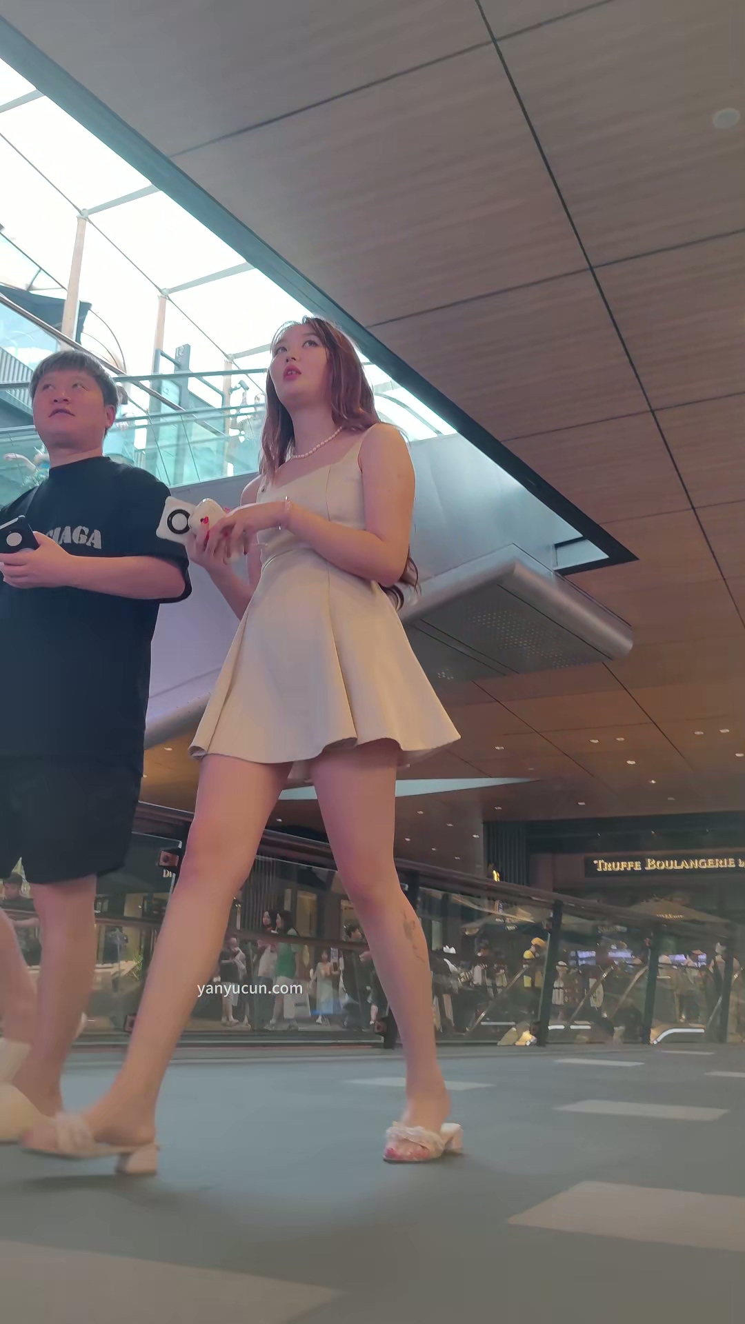 XM294白色连衣裙美女和老公逛街,白色内内 ...