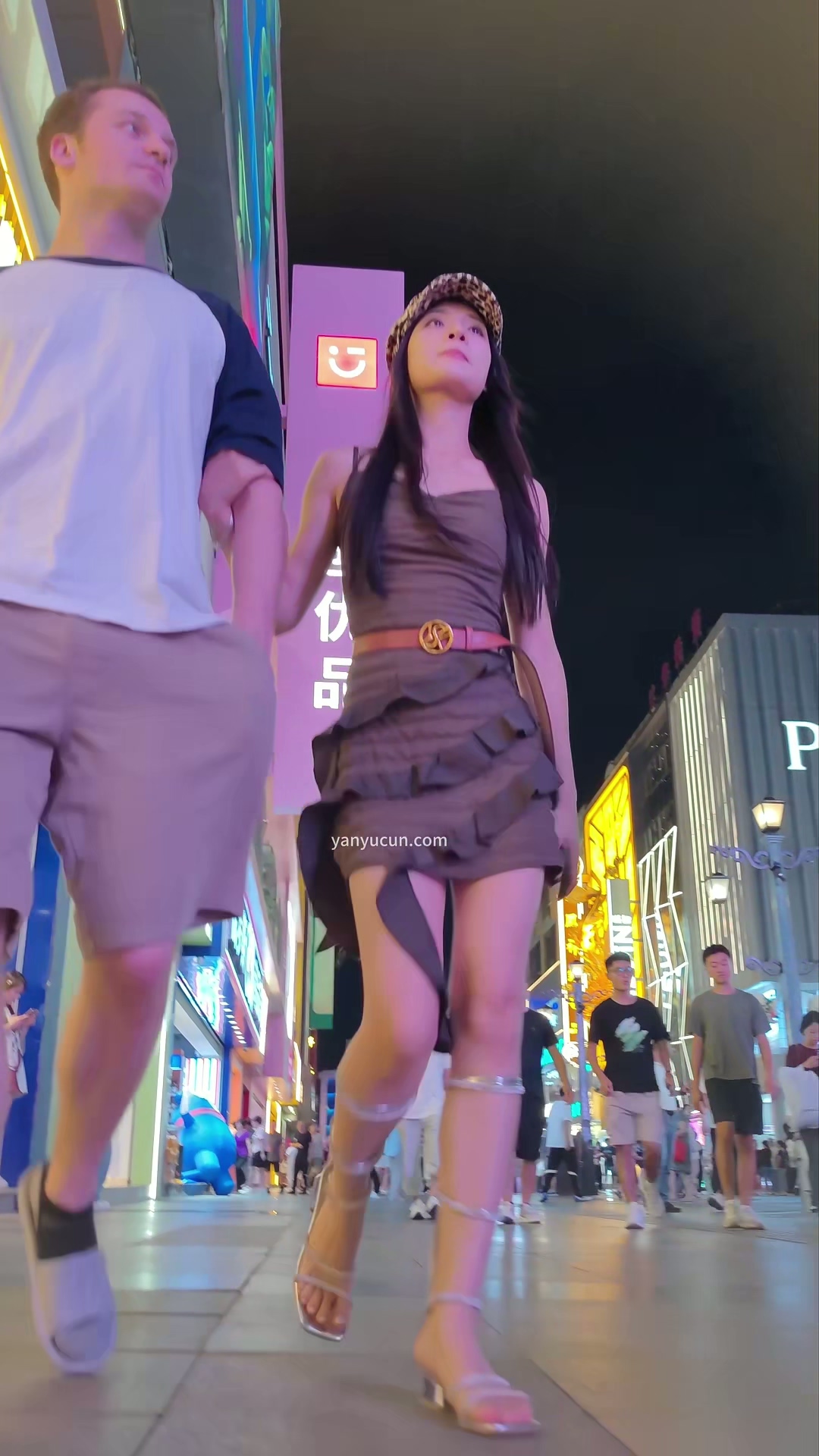 XM339灰色超短裙美女和外国男朋友逛街,豹纹窄内 ...