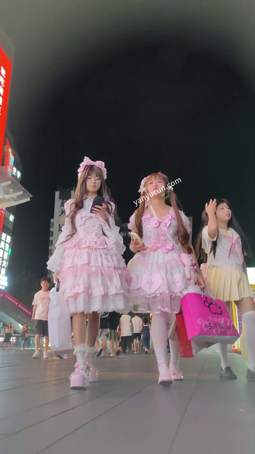 XM350洛丽塔小姐姐和朋友出来逛街,可惜那两个都穿着短 ...