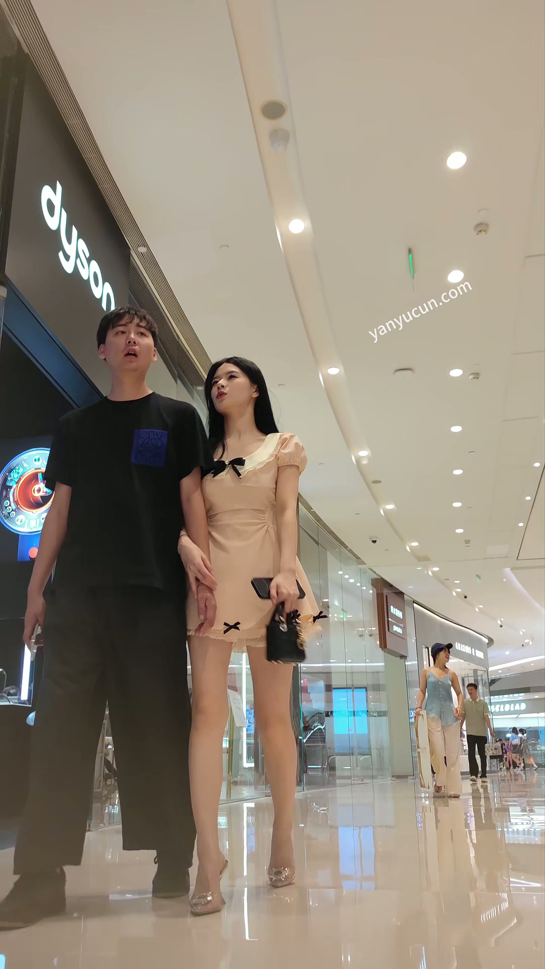 XM357粉色连衣裙极品高跟鞋美女和男朋友逛街,白色内内