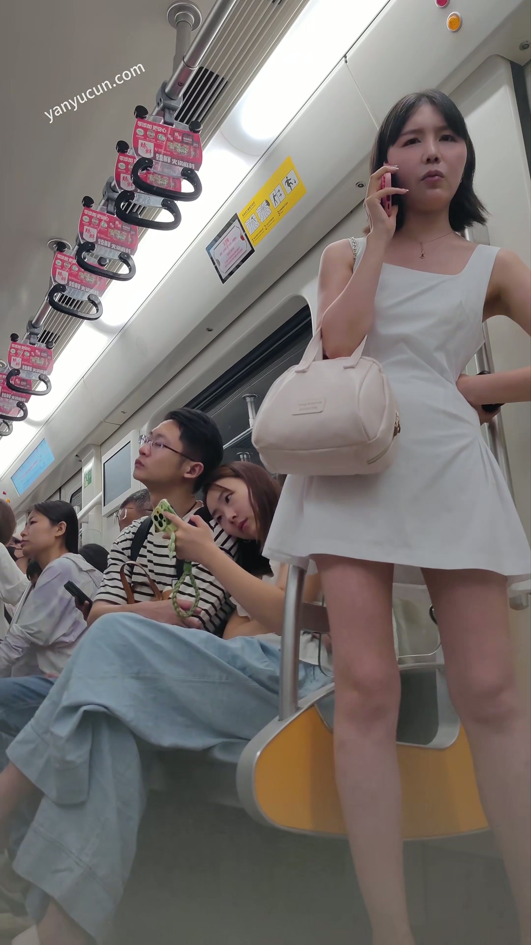XM358白色连衣裙短发美女,前后抄底灰色内内 ...