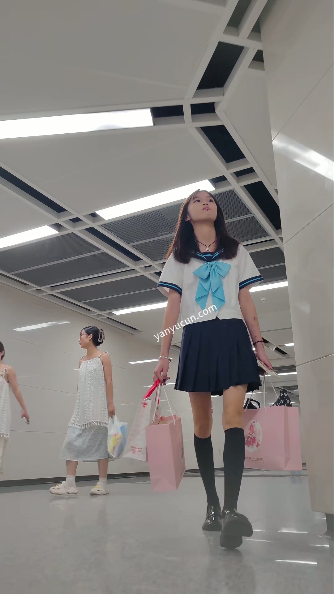 XM359黑色短腿哇JK小姐姐坐地铁,蓝色内内