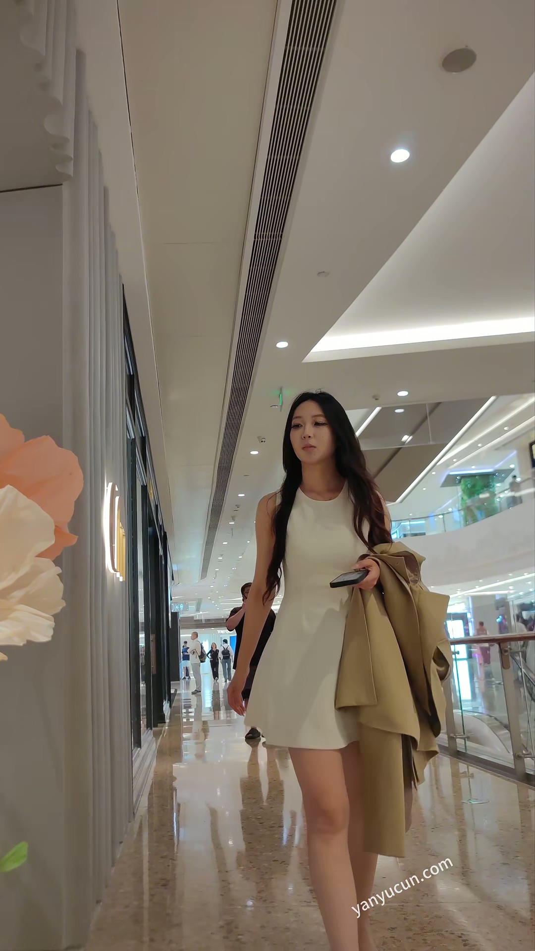 XM410白色连衣裙极品美女一个人逛街,白色内内