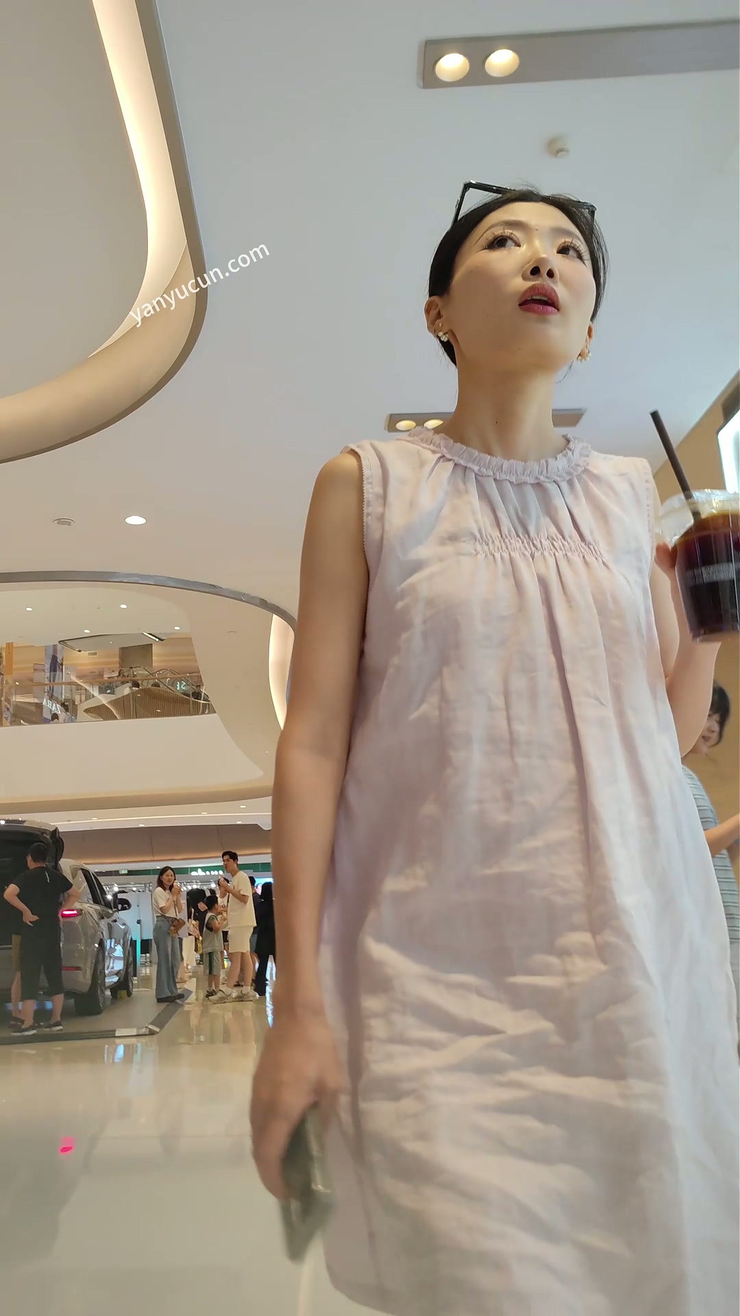 XM422粉色连衣裙美女和男朋友逛街买东西,白色内内 ...